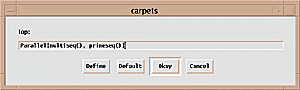 There all are manifested by Icon error messages. Realize that the carpet-specification program writes an include file which is prepended to the carpet-specification program; if the generation specifications contain errors, these become errors in the carpet-generation program.