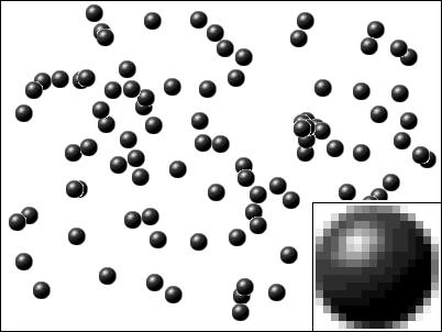 &y. Circles of radius 5, 10, or 15 pixels are drawn depending