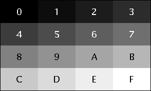 The g16 palette, shown below, provides 16 shades of gray specified