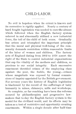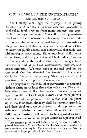 Child-Labor in the United States, Lindsay, Samuel McCune. American Economic Association, Vol. 8, No. 1 (1906), 4 pages. CD (HWDA07). Posted December 13, 2003. SAMPLE PAGE. File size 556 KB PDF