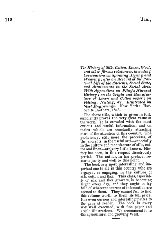 The History of Silk, Cotton, Linen, Wool, ..., ---. American Whig Review, 1 page. CD (HWDA07). Posted February 4, 2004. SAMPLE PAGE. File size 532 KB PDF