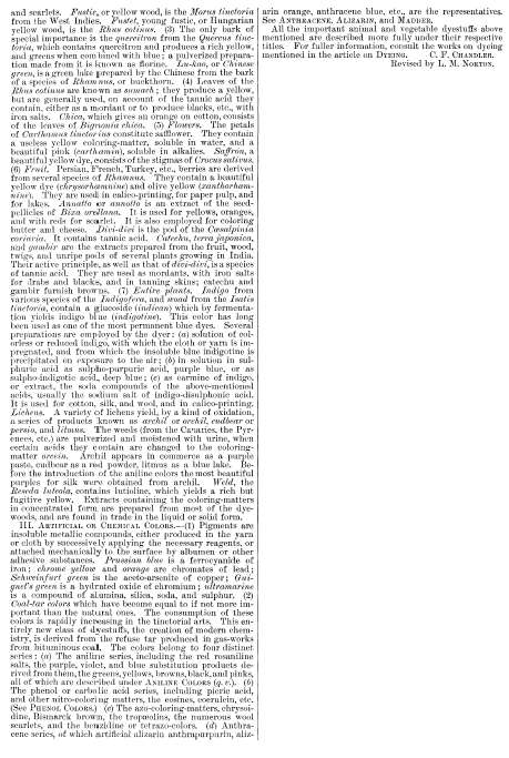 Dyestuffs, Chandler, C, F,. The Americana, 1903, 2 pages. Posted July 4, 2003. SAMPLE PAGE. File size 576 KB PDF