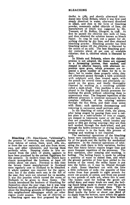Bleaching, ---. The Americana, 1903, 2 pages. Posted January 16, 2004. SAMPLE PAGE. File size 636 KB PDF