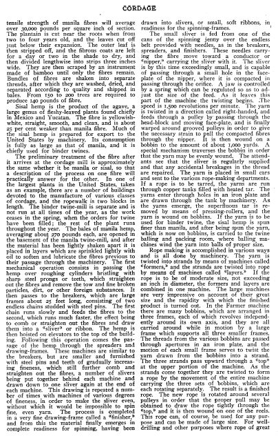 Cordage, ---. The Americana, 1903, 3 pages. Posted July 4, 2003. SAMPLE PAGE. File size 672 KB PDF