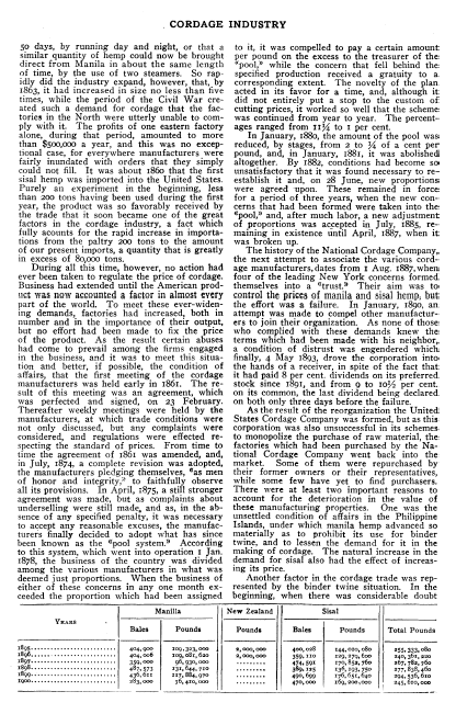 Cordage Industry, ---. The Americana, 1903, 4 pages. Posted July 4, 2003. SAMPLE PAGE. File size 726 KB PDF