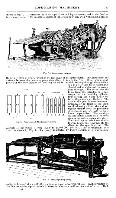 Rope-Making Machinery, ---. Appletons' Cyclopaedia of Applied Mechanics, 1889, 8 pages. Posted March 5, 2004. SAMPLE PAGE. File size 1.2 MB PDF