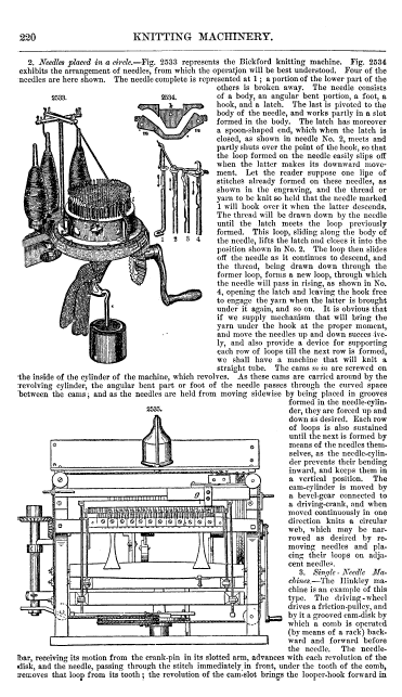 Knitting Machinery, ---. Appletons' Cyclopaedia of Applied Mechanics, 1889, 5 pages. Posted October 8, 2003. SAMPLE PAGE. File size 840 KB PDF