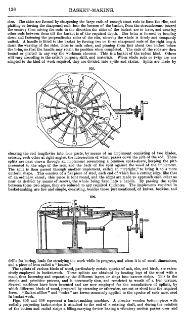 Basket-Making, ---. Appletons' Cyclopaedia of Applied Mechanics, 1889, 3 pages. Posted February 13, 2003. SAMPLE PAGE. File size 556 KB PDF