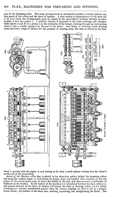 Flax, Machinery for Preparing and Spinning, ---. Appletons' Cyclopaedia of Applied Mechanics, 1889, 14 pages. Posted February 14, 2003. SAMPLE PAGE. File size 2.2 MB PDF
