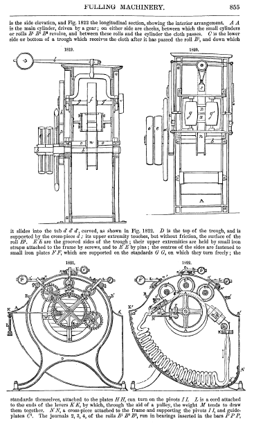 Fulling Machinery, ---. Appletons' Cyclopaedia of Applied Mechanics, 1889, 5 pages. Posted February 14, 2003. SAMPLE PAGE. File size 968 KB PDF