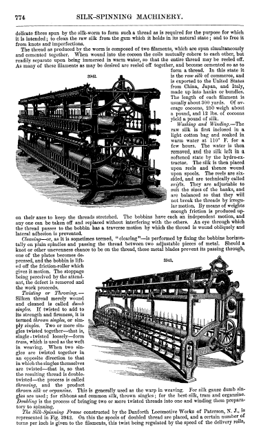 Silk-Spinning Machinery, ---. Appletons' Cyclopaedia of Applied Mechanics, 1889, 3 pages. Posted February 11, 2003. SAMPLE PAGE. File size 1.3 MB PDF