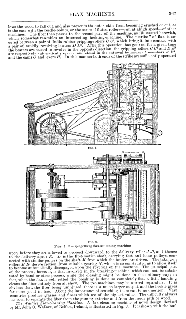 Flax Machines, ---. Appletons' Cyclopaedia of Applied Mechanics, Supplement, 1897, 3 pages. Posted March 5, 2004. SAMPLE PAGE. File size 664 KB PDF