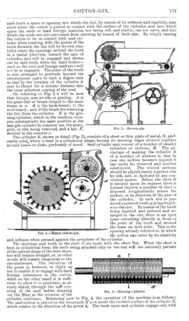 Cotton-Gin, ---. Appletons' Cyclopaedia of Applied Mechanics, Supplement, 1897, 4 pages. Posted March 13, 2004. SAMPLE PAGE. File size 717 KB PDF