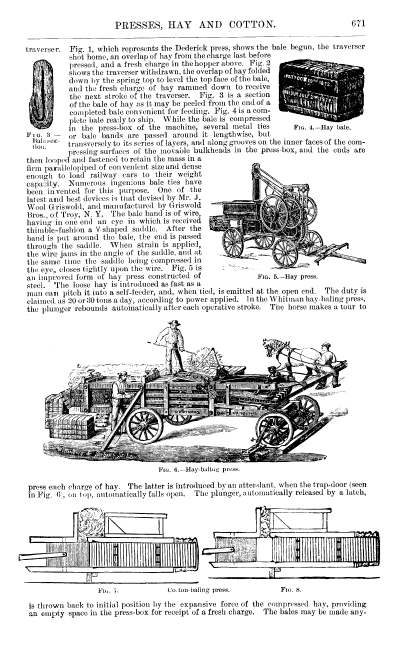 Presses, Hay and Cotton, ---. Appletons' Cyclopaedia of Applied Mechanics, Supplement, 1897, 3 pages. Posted March 5, 2004. SAMPLE PAGE. File size 624 KB PDF