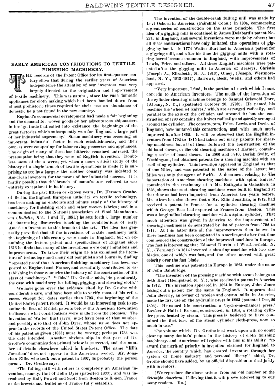 Early American Contributions to Textile Finishing Machinery, ---. Baldwin's Textile Designer, Vol. 2, No. 3 (March 1889), 1 page. CD (HWDA09). Posted January 25, 2004. SAMPLE PAGE. File size 552 KB PDF