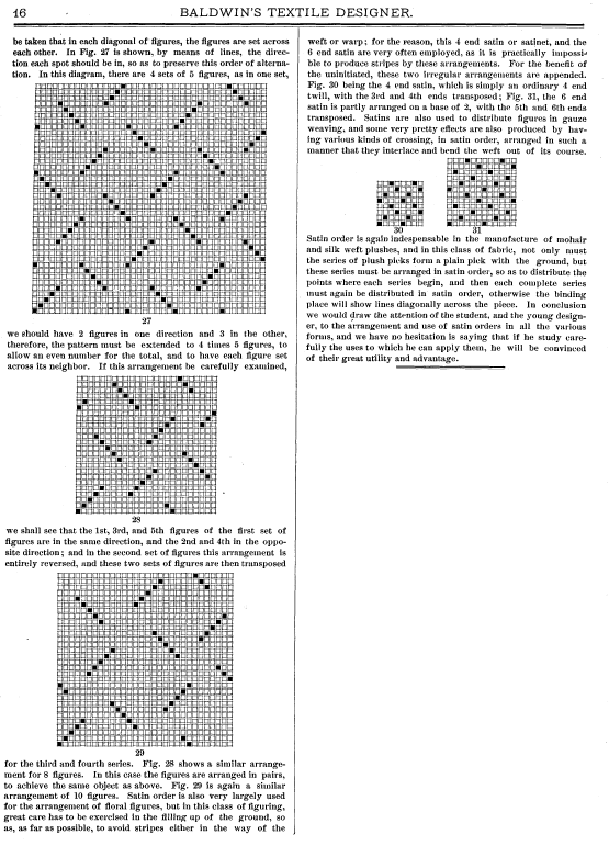 Satin Weaves and Some of the Uses to Which They are Applied, ---. Baldwin's Textile Designer, Vol. 2, No. 1 (January 1889), 2 pages. CD (HWDA09). Posted January 25, 2004. SAMPLE PAGE. File size 560 KB PDF