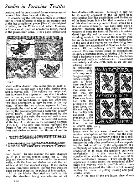 Studies in Peruvian Textiles: Double-Cloth Weaves, Bunt, Cyril G. E. Burlington Magazine, Vol. 32 (1918), 4 pages. CD (HWDA09). Posted May 15, 2003. SAMPLE PAGE. File size 756 KB PDF