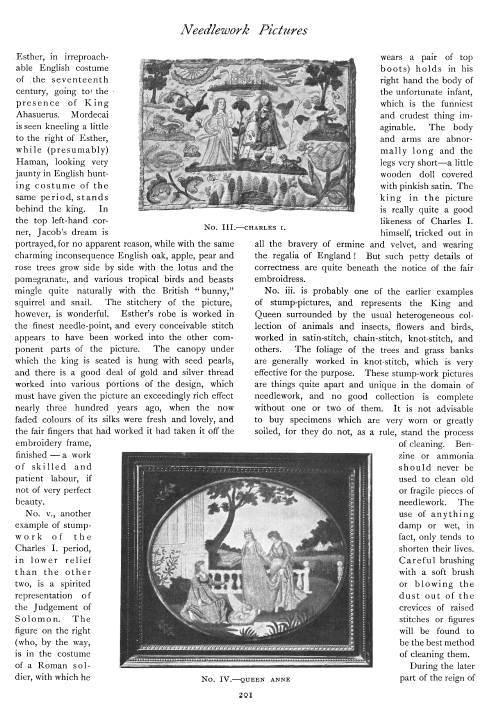 Needlework Pictures, Rae, Olive Milne. The Connoisseur, Vol. 17 (1906), 5 pages. CD (HWDA09). Posted August 25, 2003. SAMPLE PAGE. File size 1 MB PDF
