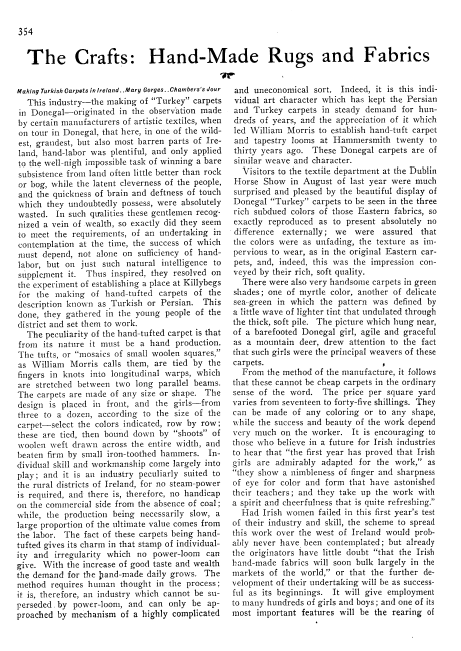 Crafts: Hand-Made Rugs and Fabrics, ---. Current Literature, Vol. 30 (1901), 5 pages. CD (HWDA07). Posted November 2, 2003. SAMPLE PAGE. File size 916 KB PDF