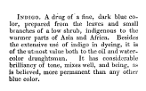 Indigo, ---. Dictionary of the Arts, Sciences, and Manfactures, 1853, 1 page. Posted February 16, 2004. SAMPLE PAGE. File size 396 KB PDF