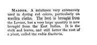 Madder, ---. Dictionary of the Arts, Sciences, and Manfactures, 1853, 1 page. Posted February 16, 2004. SAMPLE PAGE. File size 396 KB PDF