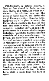 Filament, ---. Domestic Encyclopedia, 1821, 1 page. Posted February 16, 2004. SAMPLE PAGE. File size 416 KB PDF