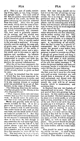 Flax, ---. Domestic Encyclopedia, 1821, 3 pages. Posted February 16, 2004. SAMPLE PAGE. File size 624 KB PDF