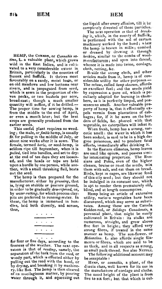 Hemp, ---. Domestic Encyclopedia, 1821, 2 pages. Posted February 16, 2004. SAMPLE PAGE. File size 568 KB PDF