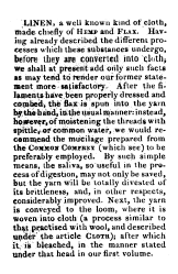 Linen, ---. Domestic Encyclopedia, 1821, 1 page. Posted February 16, 2004. SAMPLE PAGE. File size 412 KB PDF