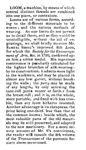 Loom, ---. Domestic Encyclopedia, 1821, 1 page. Posted February 16, 2004. SAMPLE PAGE. File size 420 KB PDF