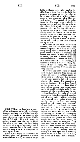 Silk, ---. Domestic Encyclopedia, 1821, 1 page. Posted February 16, 2004. SAMPLE PAGE. File size 400 KB PDF
