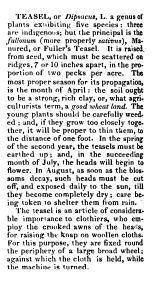 Teasel, ---. Domestic Encyclopedia, 1821, 1 page. Posted February 16, 2004. SAMPLE PAGE. File size 412 KB PDF