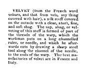 Velvet, ---. Domestic Encyclopedia, 1821, 1 page. Posted February 16, 2004. SAMPLE PAGE. File size 400 KB PDF