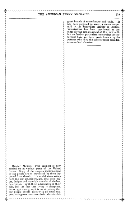 Carpet Makers, ---. Dwight's American Magazine and Family Newspaper, Vol. 2 (1846), 1 page. CD (HWDA07). Posted May 14, 2004. SAMPLE PAGE. File size 416 KB PDF