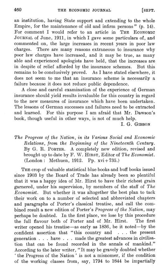 The Progress of the Nation, in its Various Social and Economic Relations, from the Beginning of the Nineteenth Century, Ashley, W. J. Economic Journal, Vol. 22, No. 87 (September 1912), 5 pages. Posted May 1, 2006. SAMPLE PAGE. File size 584 KB PDF