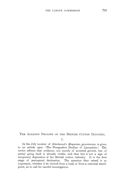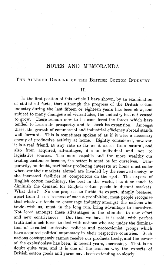 Alleged Decline of the British Cotton Industry, Helm, Elijah. Economic Journal, Vol. 3, No. 9 (1893), 8 pages. Posted November 11, 2006. SAMPLE PAGE. File size 920 KB PDF