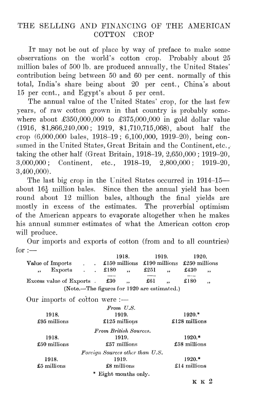The Selling and Financing of the American Cotton Crop, Wyse, R. C. Economic Journal, Vol. 30, No. 120 (December 1920), 11 pages. Posted November 12, 2006. SAMPLE PAGE. File size 1.1 MB PDF