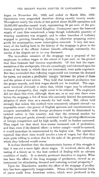 Recent Wages Dispute in the Lancashire Cotton-Spinning Industry, Helm. Elijah. Economic Journal, Vol. 3, No. 10 (June 1893), 4 pages. CD (HWDA07). Posted February 3, 2004. SAMPLE PAGE. File size 564 KB PDF