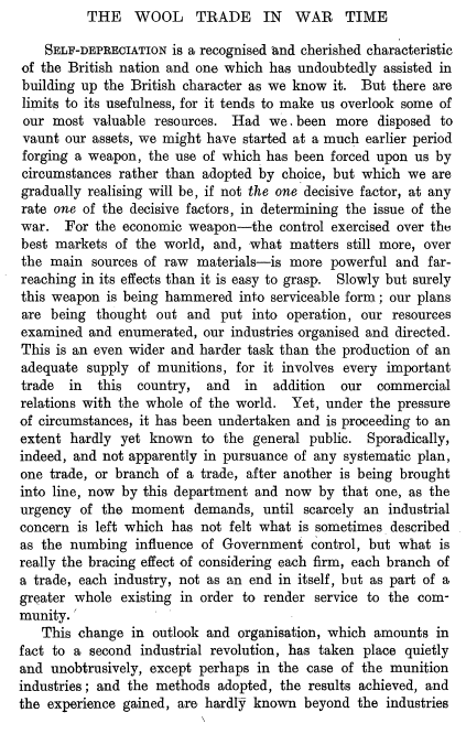 The Wool Trade in War Time, Zimmern, Dorothy M. Economic Journal, Vol. 28, No. 109 (March 1918), 23 pages. Posted December 17, 2006. SAMPLE PAGE. File size 2.6 MB PDF