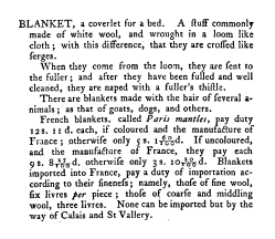 Blanket, ---. Encyclopedia Britannica, 1st ed., 1771, 1 page. Posted March 8, 2004. SAMPLE PAGE. File size 412 KB PDF