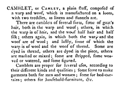 Camblet, ---. Encyclopedia Britannica, 1st ed., 1771, 1 page. Posted March 8, 2004. SAMPLE PAGE. File size 408 KB PDF