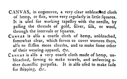 Canvas, ---. Encyclopedia Britannica, 1st ed., 1771, 1 page. Posted March 8, 2004. SAMPLE PAGE. File size 404 KB PDF