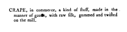 Crape, ---. Encyclopedia Britannica, 1st ed., 1771, 1 page. Posted March 8, 2004. SAMPLE PAGE. File size 396 KB PDF