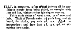 Felt, ---. Encyclopedia Britannica, 1st ed., 1771, 1 page. Posted March 8, 2004. SAMPLE PAGE. File size 400 KB PDF