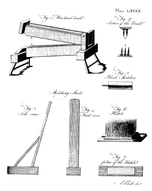 Flax, ---. Encyclopedia Britannica, 1st ed., 1771, 8 pages. Posted June 26, 2003. SAMPLE PAGE. File size 1 MB PDF