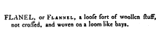 Flannel, ---. Encyclopedia Britannica, 1st ed., 1771, 1 page. Posted March 8, 2004. SAMPLE PAGE. File size 392 KB PDF