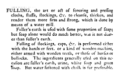 Fulling, ---. Encyclopedia Britannica, 1st ed., 1771, 1 page. Posted March 8, 2004. SAMPLE PAGE. File size 408 KB PDF