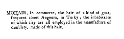 Mohair, ---. Encyclopedia Britannica, 1st ed., 1771, 1 page. Posted March 9, 2004. SAMPLE PAGE. File size 396 KB PDF