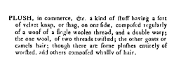 Plush, ---. Encyclopedia Britannica, 1st ed., 1771, 1 page. Posted March 9, 2004. SAMPLE PAGE. File size 400 KB PDF