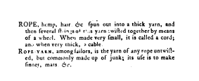 Rope and Rope Yarn, ---. Encyclopedia Britannica, 1st ed., 1771, 1 page. Posted March 9, 2004. SAMPLE PAGE. File size 400 KB PDF